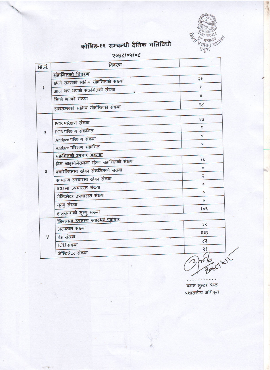 २०७८/०५/०८ काेभिड १९ सम्बन्धी दैनिक गतिविधी