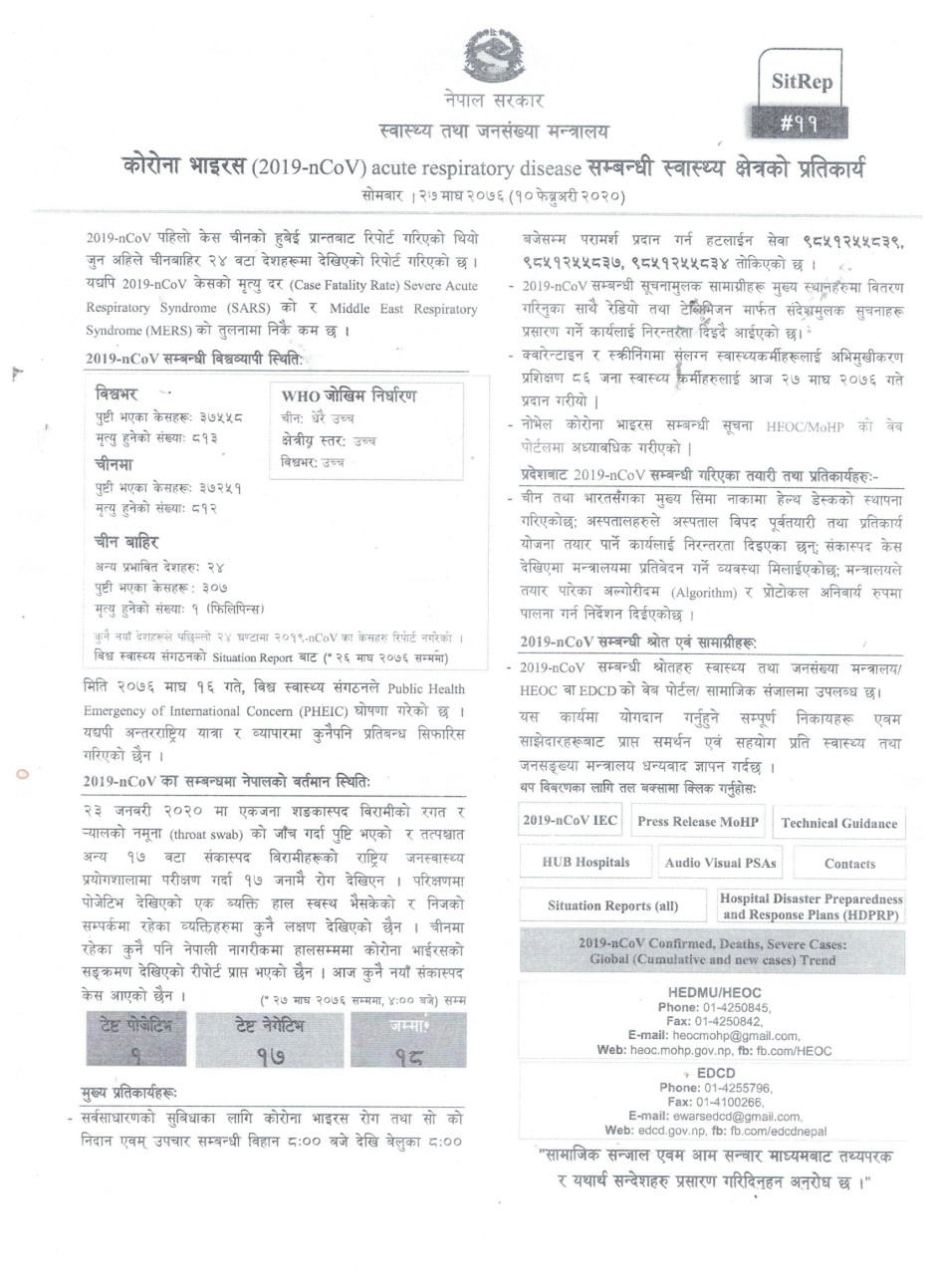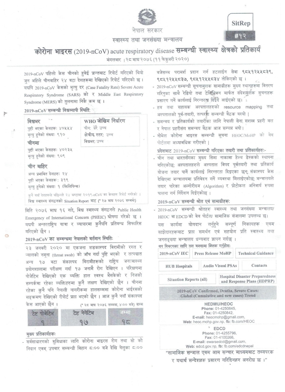 कोरोना भाइसर (2019-nCoV)acute respiratory disease सम्बन्धी स्वास्थ्य क्षेत्रको प्रतिकार्य