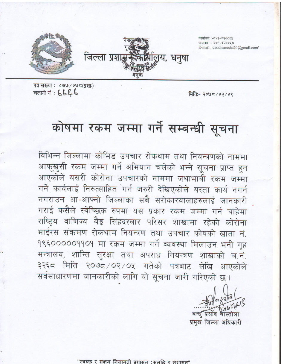 © सर्वाधिकार सुरक्षित जिल्ला प्रशासन कार्यालय, धनुषा