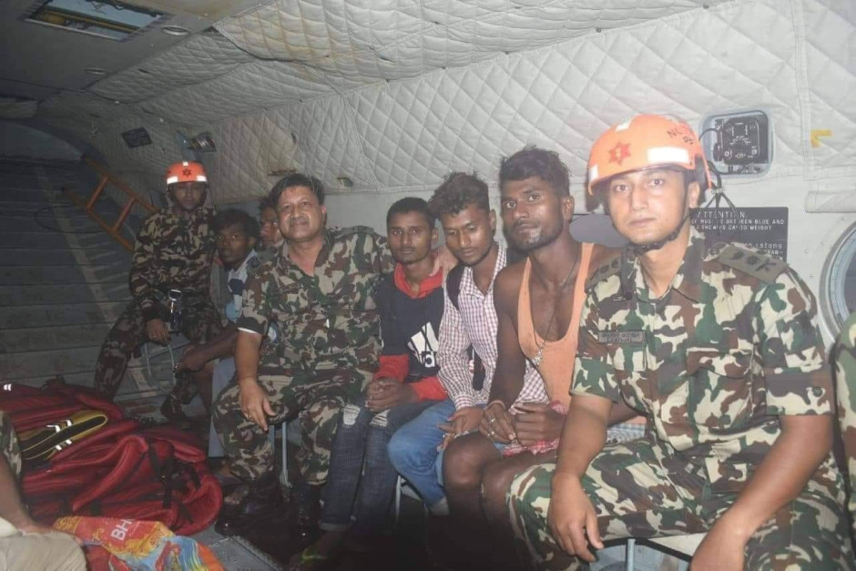 धनुषा र सिरहा जोडिने हुलाकी सडक किनारको कमला नदीको बाँधमा २ दिन देखि फसेका एक ईन्जिनियर यमुना यादव सहित ९ जनालाई पृतनापती नरेन्द्र भटको नेतृत्वमा साहसिक पाइलटहरु द्वारा नेपाली सेनाको हेलिकप्टर द्वारा २०७६/३/२८ गतेका दिन सकुशल उद्धार २०७६/३/२८