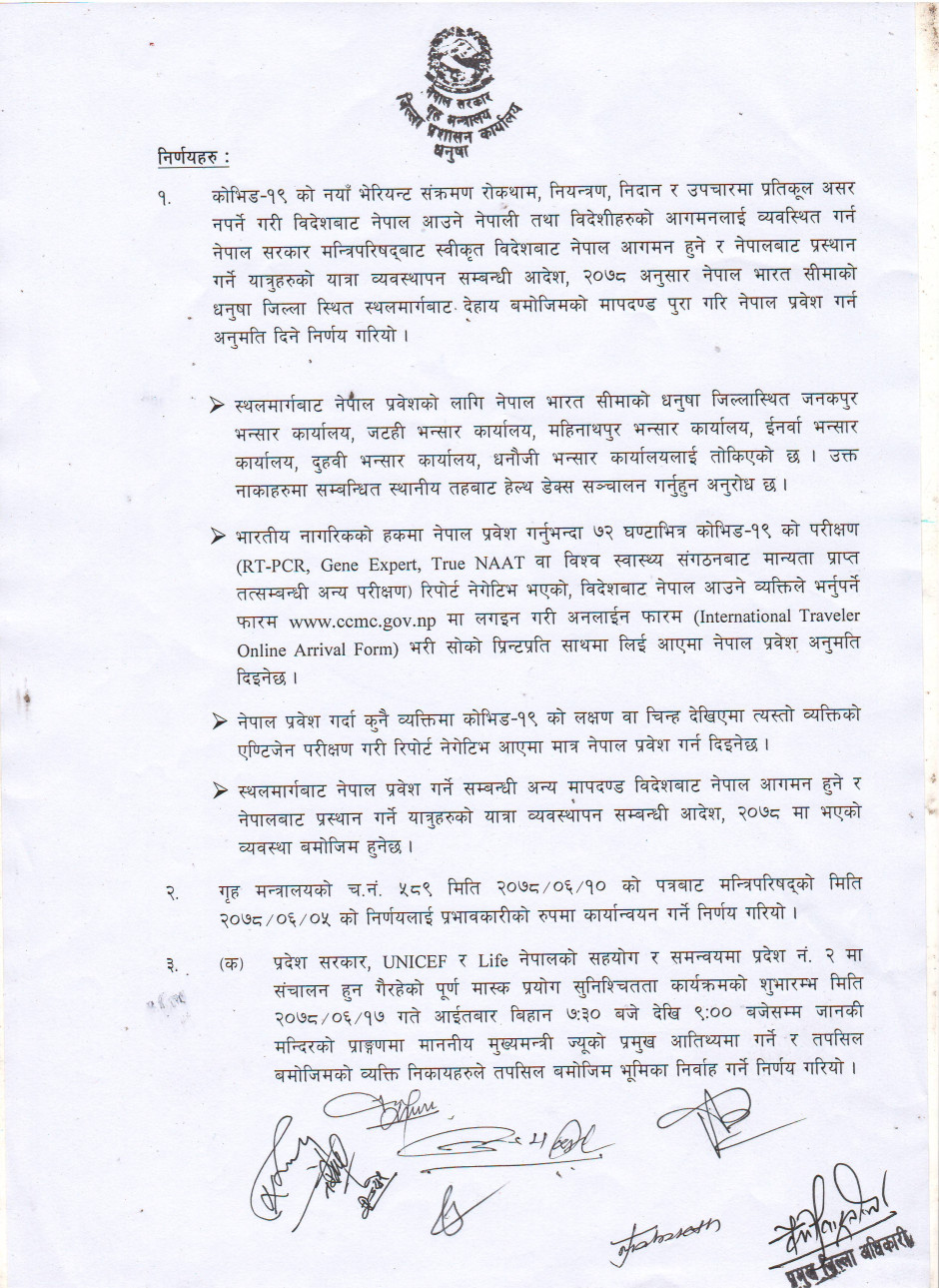 मिति २०७८/०६/१२ गते बसेको जिल्ला काेभिड-१९ संकट व्यवस्थापन समिति बैठकबाट भएको निर्णय