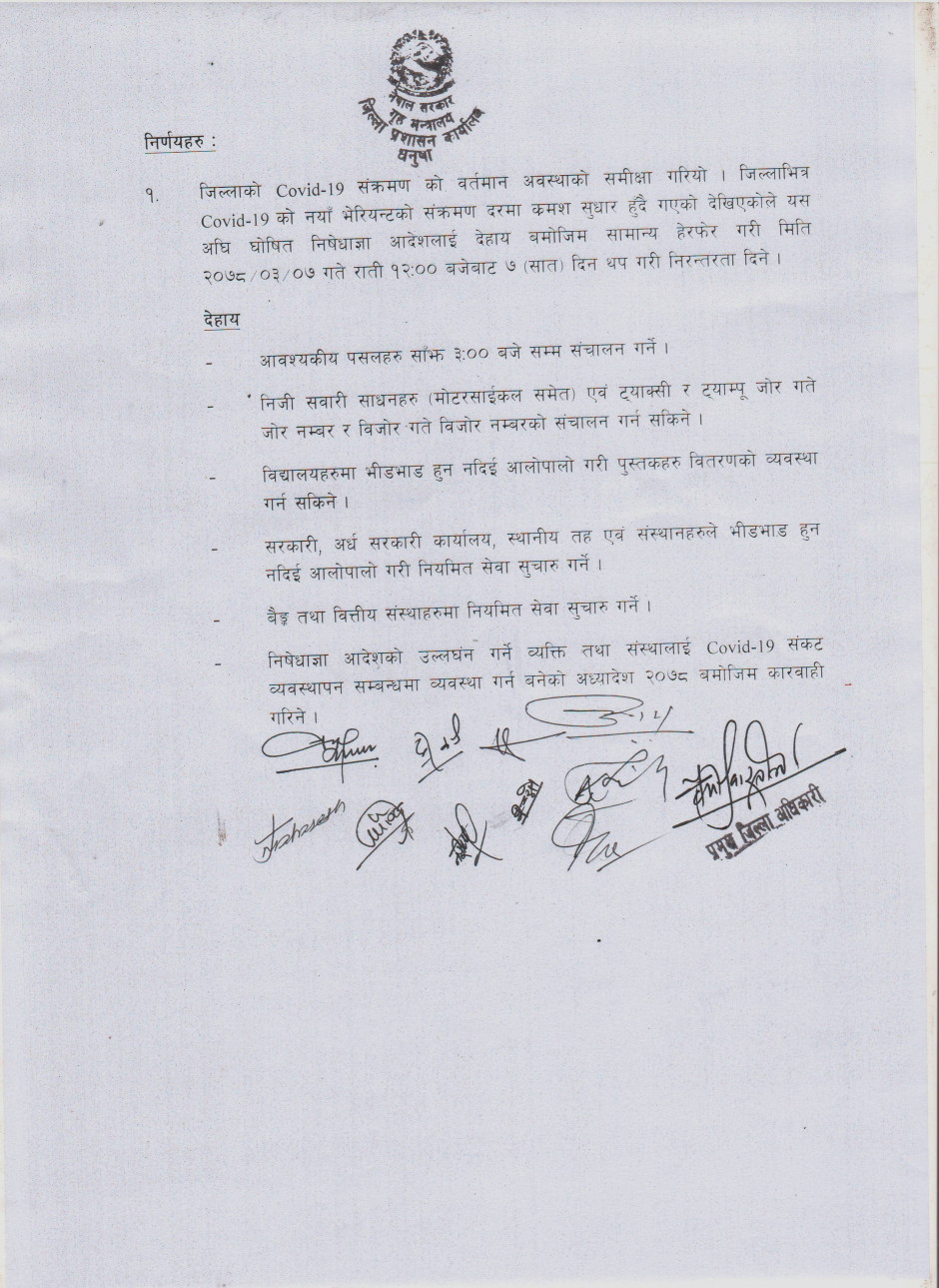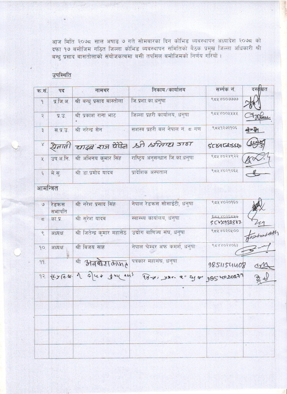 मिति २०७८/०३/०७ गते बसेको जिल्ला काेभिड व्यवस्थापन समिति बैठकबाट भएको निर्णय