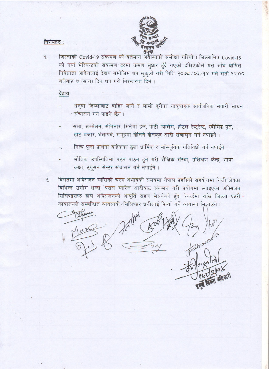 मिति २०७८/०३/१४ गते बसेको जिल्ला काेभिड व्यवस्थापन समिति बैठकबाट भएको निर्णय