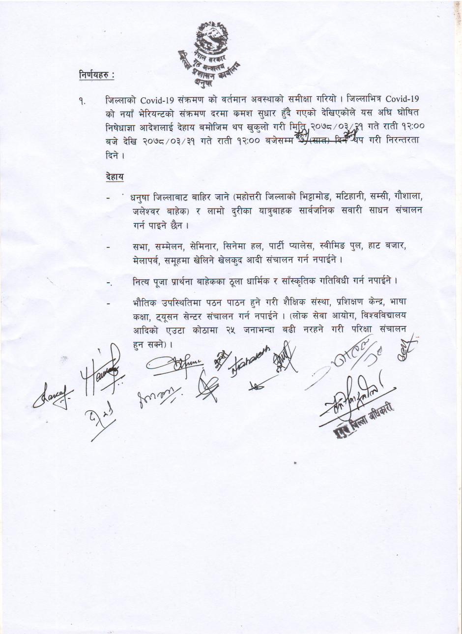 मिति २०७८/०३/२१ गते बसेको जिल्ला काेभिड व्यवस्थापन समिति बैठकबाट भएको निर्णय