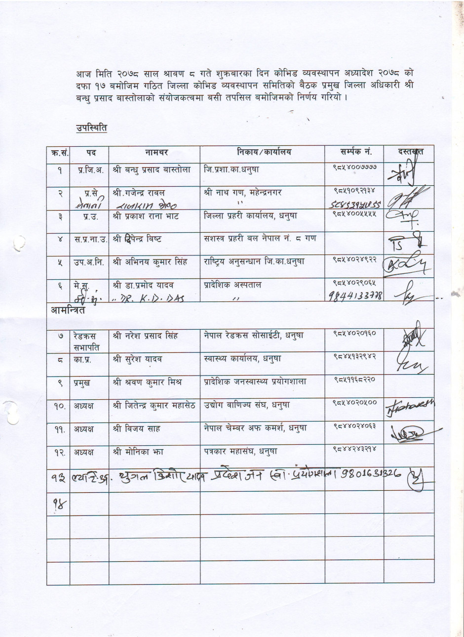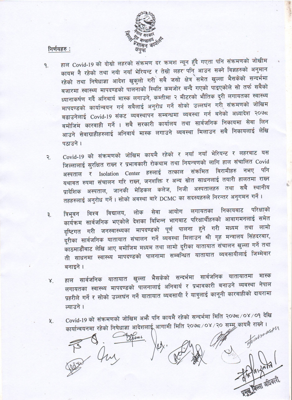 मिति २०७८/०४/०८ गते बसेको जिल्ला काेभिड व्यवस्थापन समिति बैठकबाट भएको निर्णय