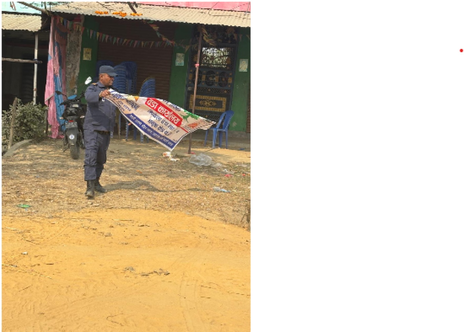 3. झण्डा, चुनाव चिन्ह र उम्मेदवारको तस्वीर सहितको टिशर्ट लगाई प्रचार प्रसार गर्दै हिडेका ४ जनालाई आचारसंहिताको जानकारी गराई टिशर्ट नियन्त्रणमा लिइएको ।