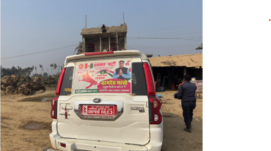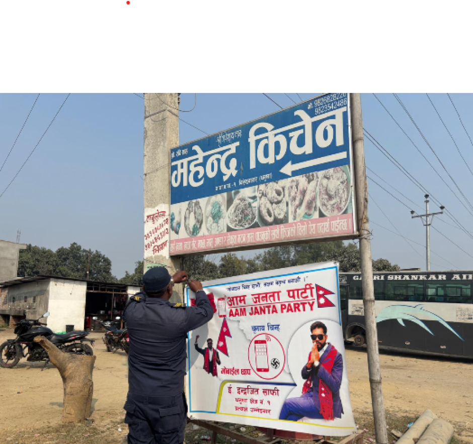 2. 2000 भन्दा बढी पोस्टर, ५० भन्दा बढी ब्यानर र अन्य प्रचार प्रसार सामग्री सहितको ३ पाङ्ग्रे सवारी साधन कुनै दल/उम्मेदवारको प्रचार प्रसार गर्दै गरेको अवस्थामा नियन्त्रणमा लिई थप कारवाहीका लागि नेपाल प्रहरीलाई बुझाइएको ।