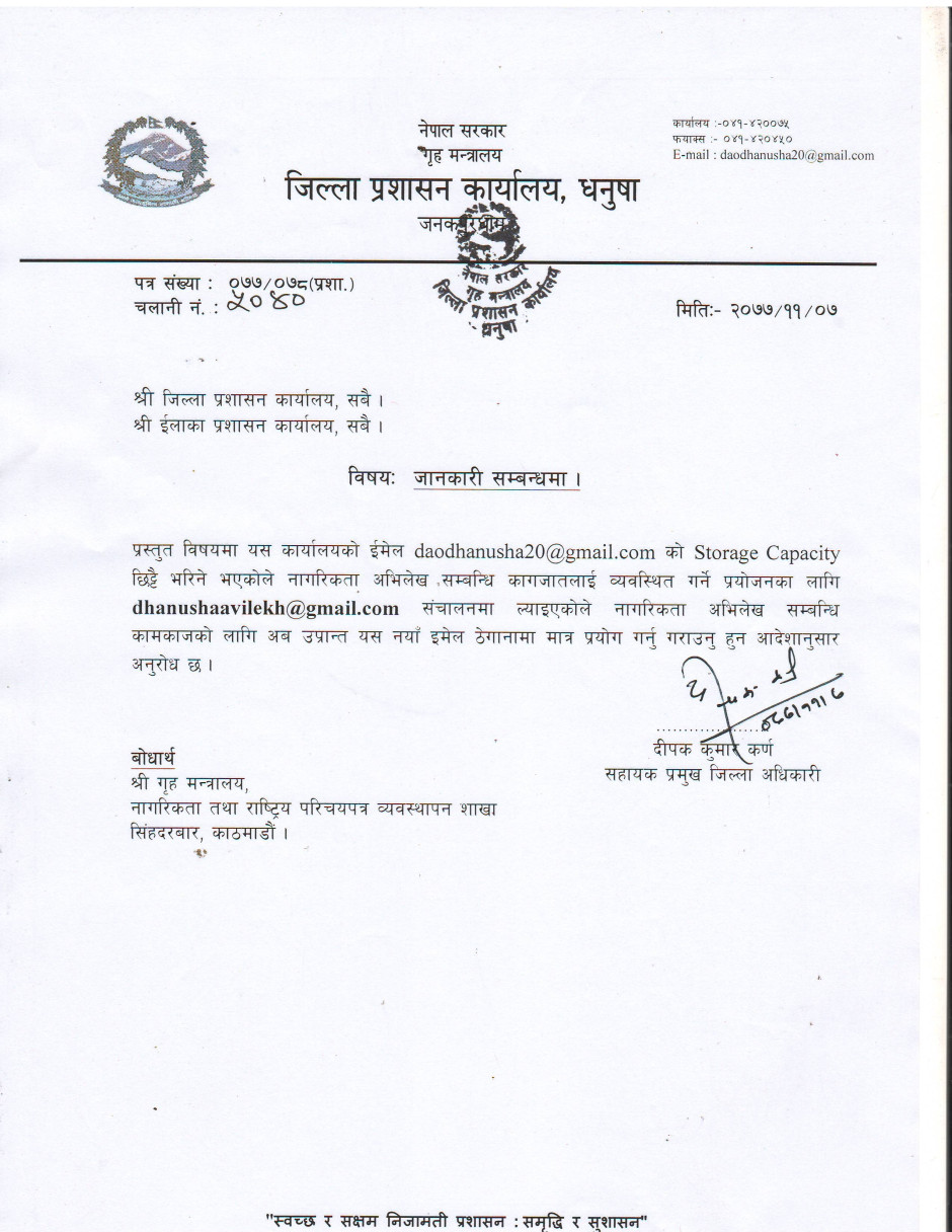 © सर्वाधिकार सुरक्षित जिल्ला प्रशासन कार्यालय, धनुषा