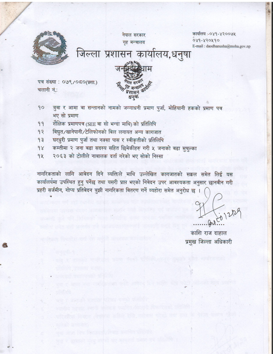 जिल्ला प्रशासन कार्यालय धनुषाबाट जारी गरिएको सूचना ।
