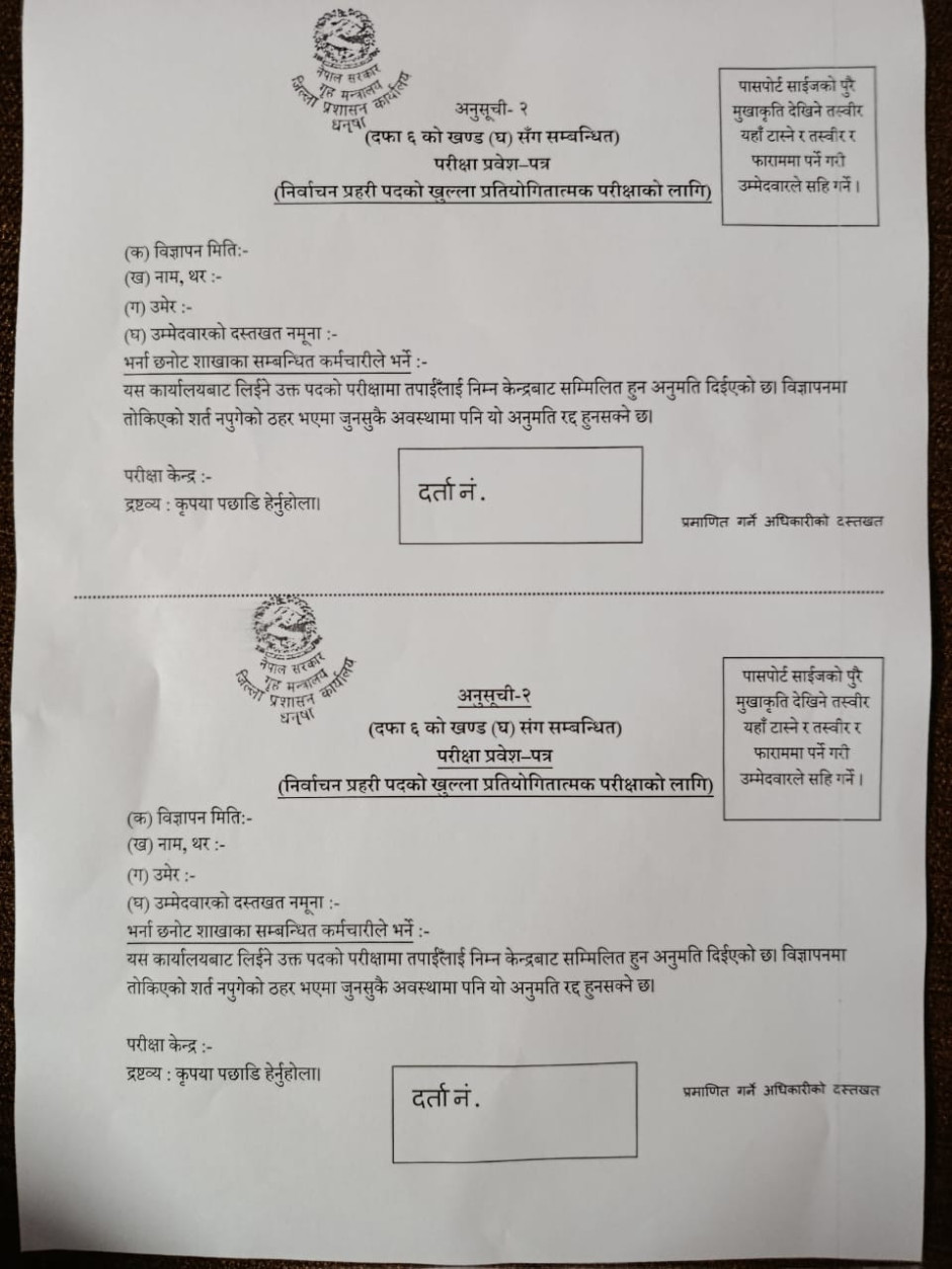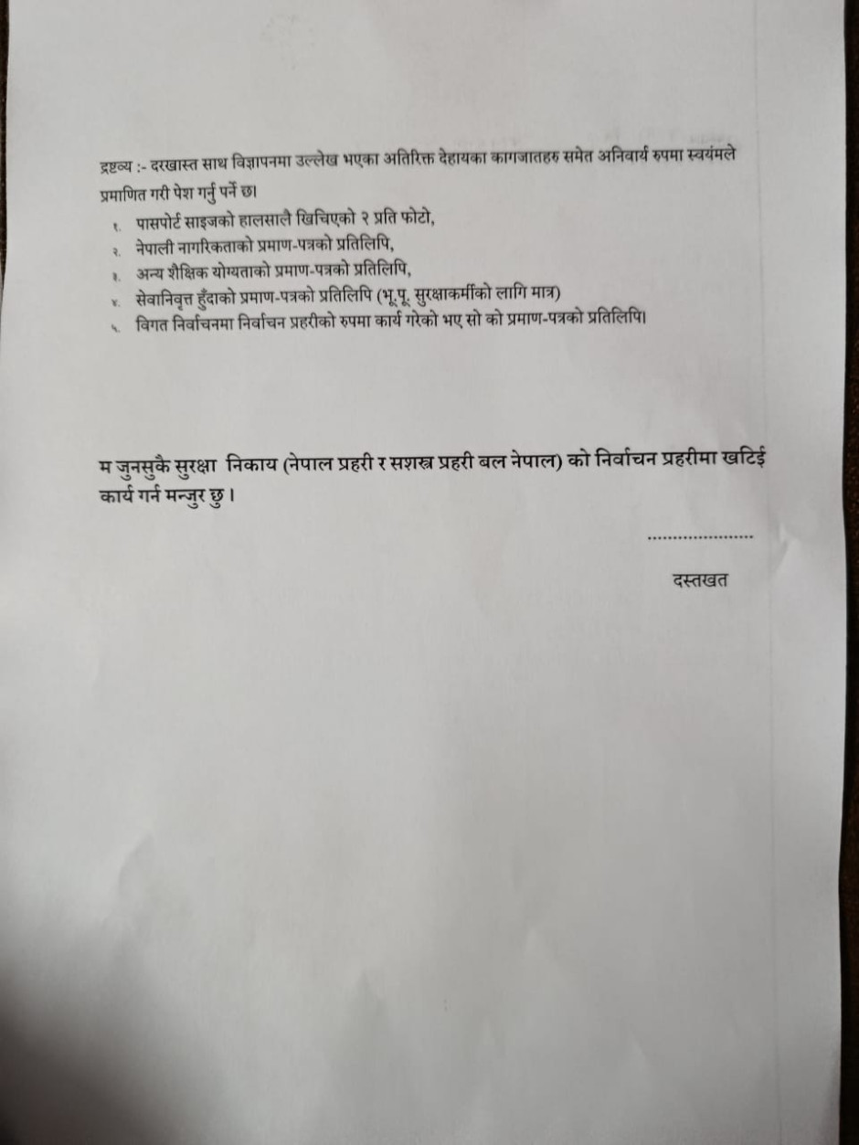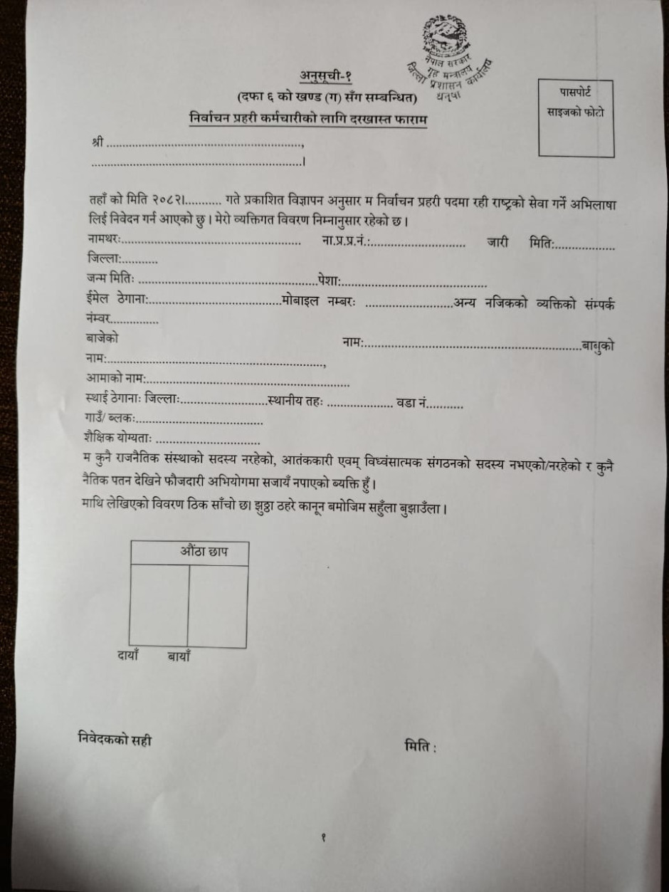 निर्वाचन प्रहरी कर्मचारीकाे लागि दरखास्त फाराम ।