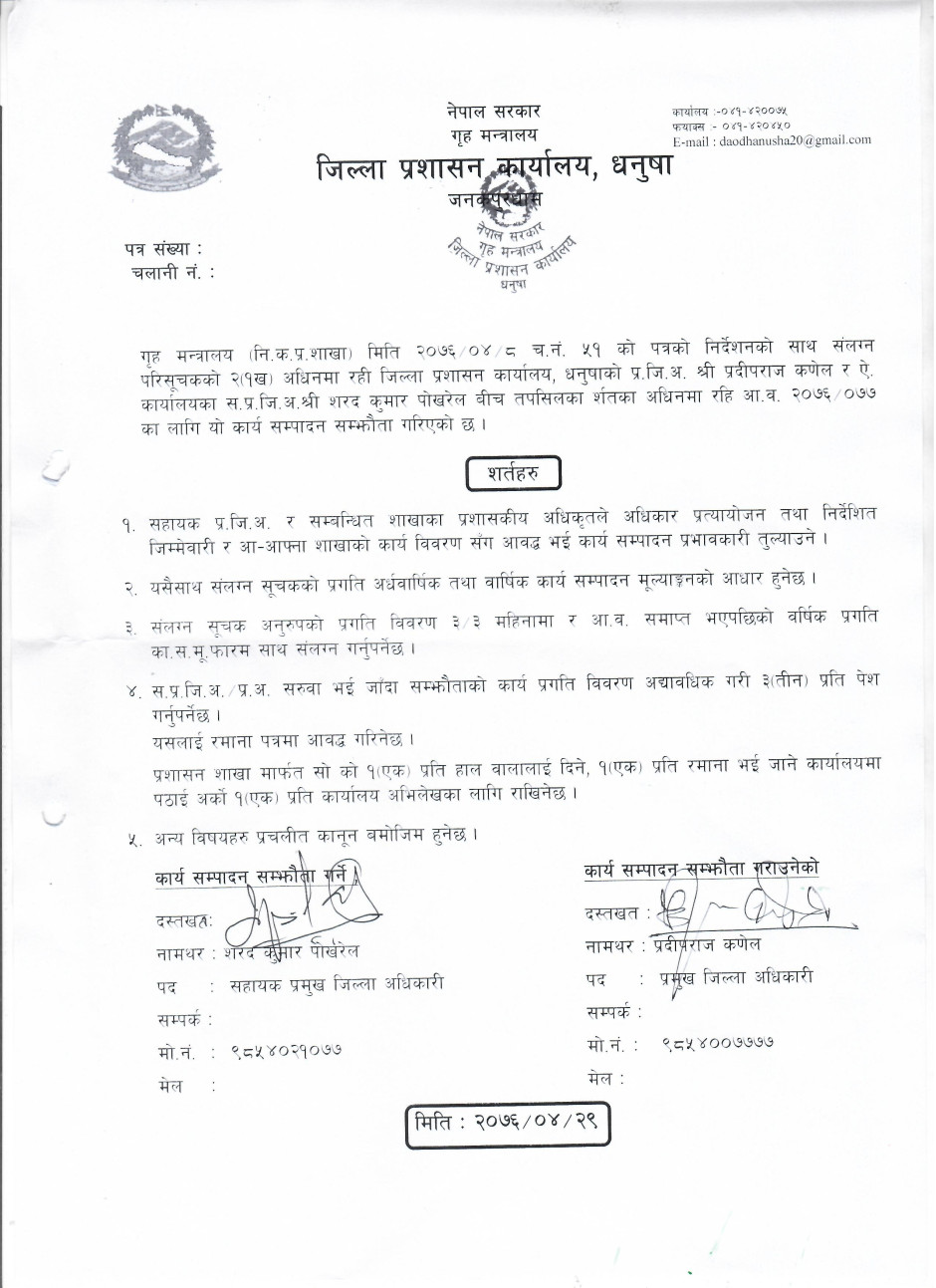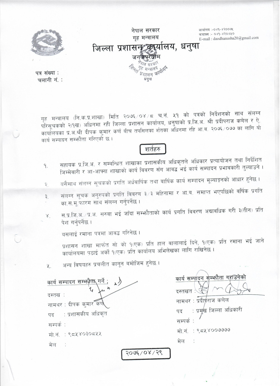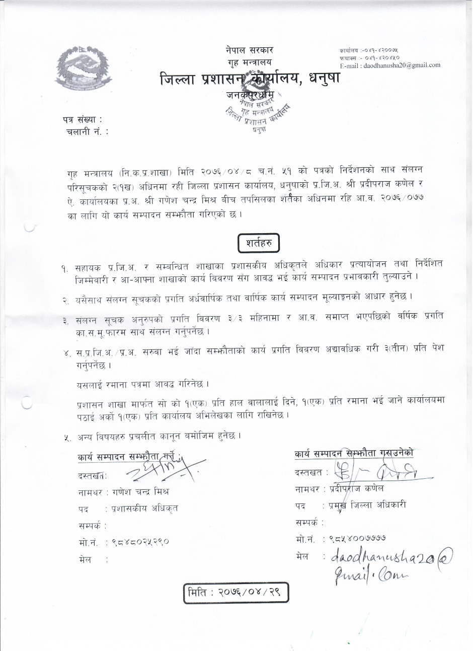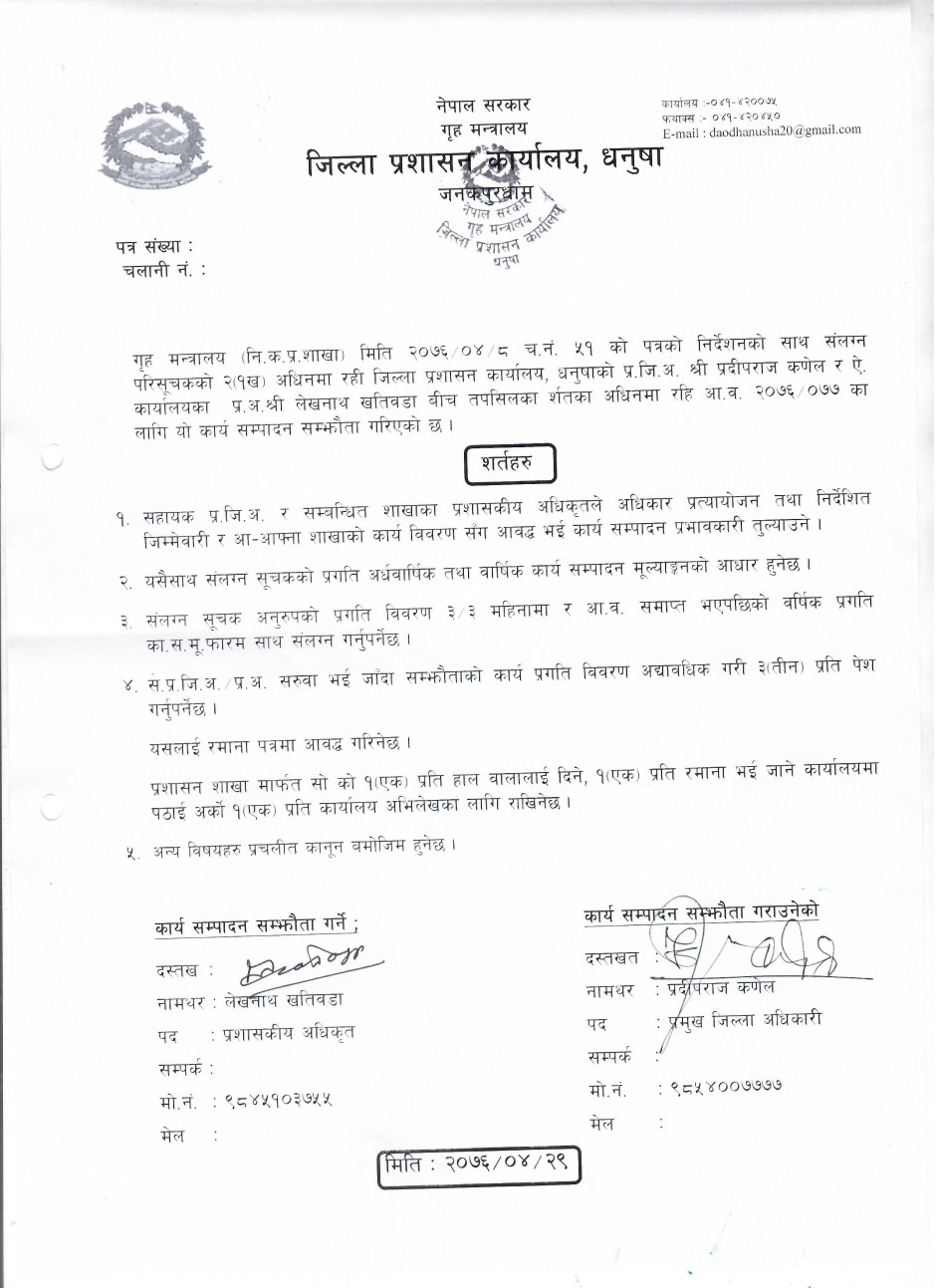 आ.व. २०७६/७७ को लागि ५ बुँदे कार्य सम्पादन सम्झौता यसैसाथ संलग्न छ ।