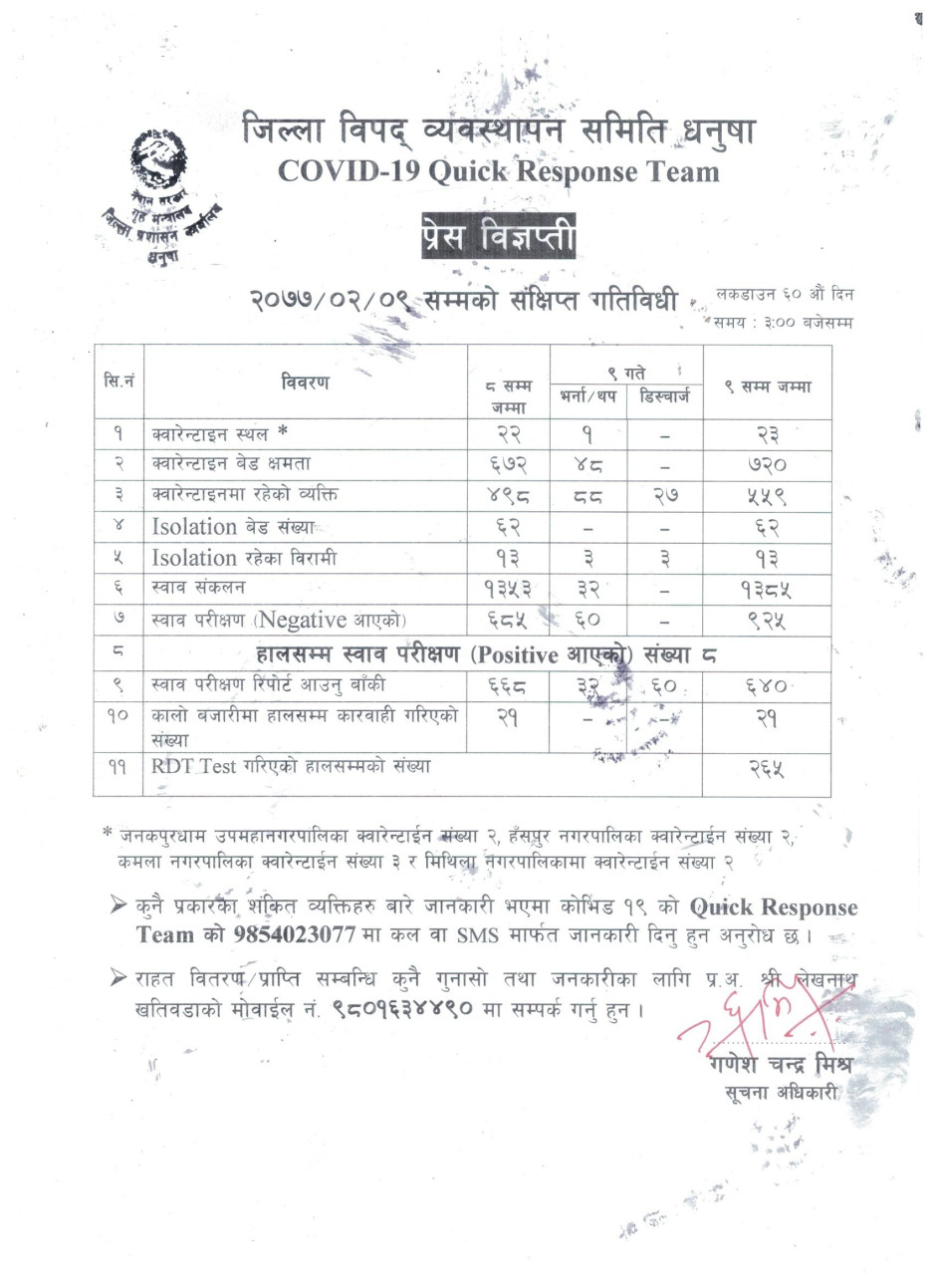 प्रेस विज्ञप्ति २०७७-२-९
