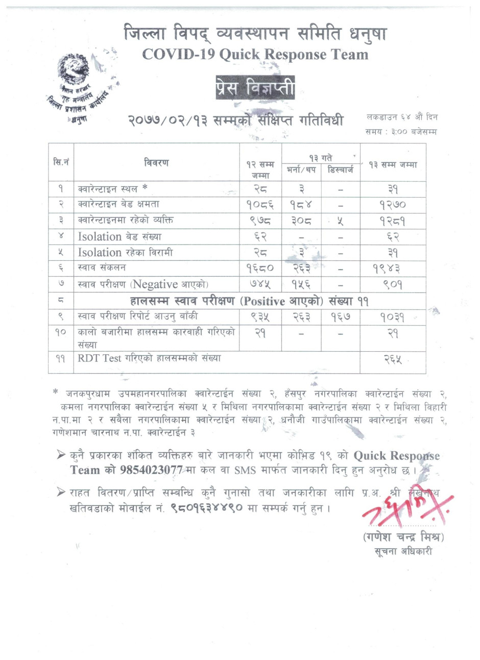 मिति २०८२/१०/२७ गते धनुषा जिल्लाको निर्वाचन क्षेत्र नं. 1, 3 र ४ मा अनुगमन गर्दा निर्वाचन आचारसंहिता विपरित चुनाव प्रचार प्रसार गरिएको पाइएकाले कारवाही गरिएको छ
