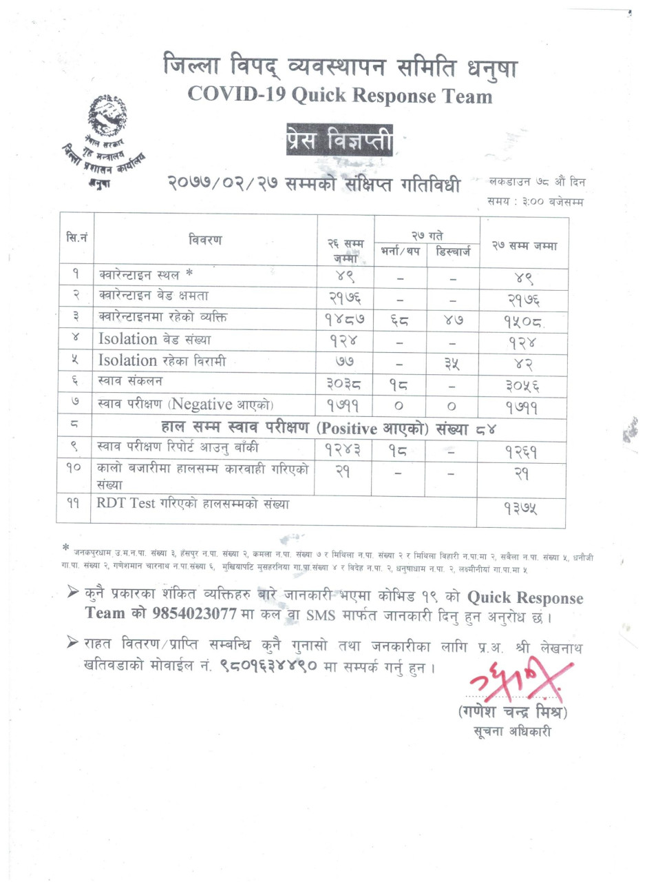 प्रेस विज्ञप्ति २०७७-२-२७