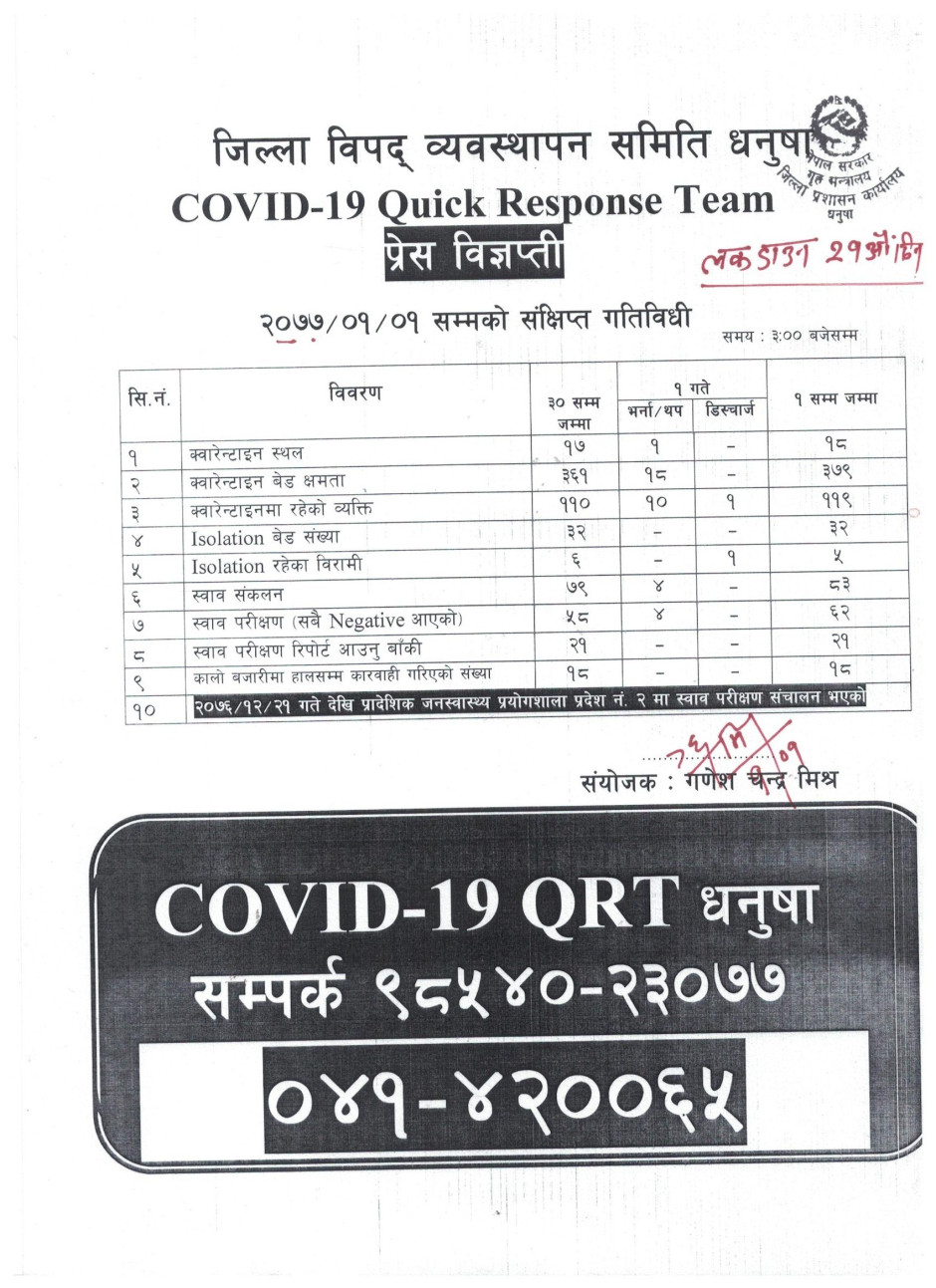 धनुषा जिल्लामा धार्मिक सहिष्णुता एवं सामाजिक सदभाव कायम राख्न जिल्लास्थित सुरक्षा निकायका पदाधिकारीहरु, जिल्लास्थित राजनितीक दल, जनकपुर उद्योग वाणिज्य संघ, जिल्ला पत्रकार महासंघ, सामाजिक साँस्कृतिक एवं धार्मिक क्षेत्रका अगुवाहरु सँग भएको बैठकको निर्णय