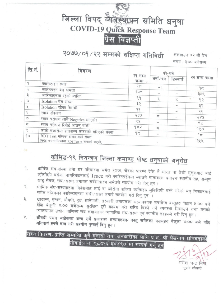 प्रेस विज्ञप्ति २०७७-१-२२
