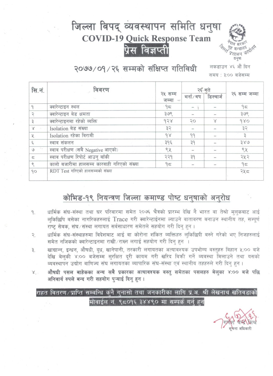 प्रेस विज्ञप्ति २०७७-१-२६