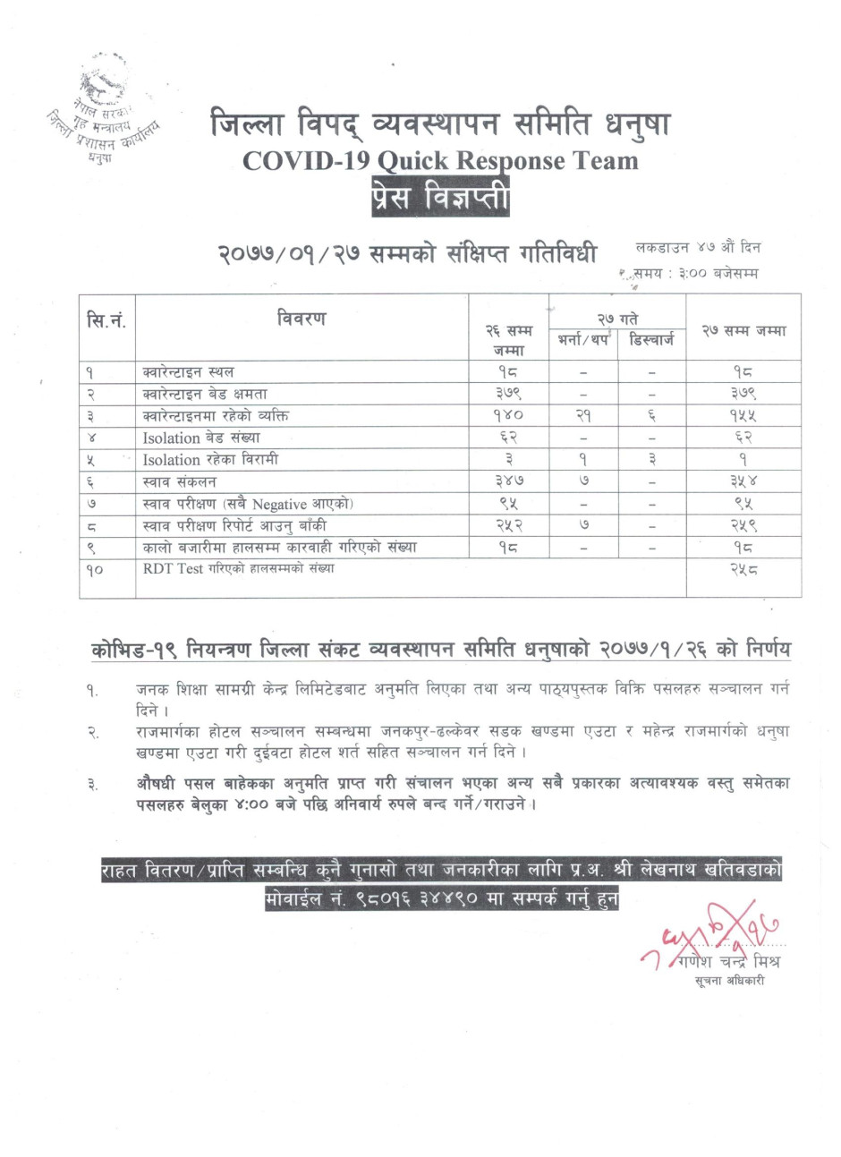 प्रेस विज्ञप्ति २०७७-१-२७