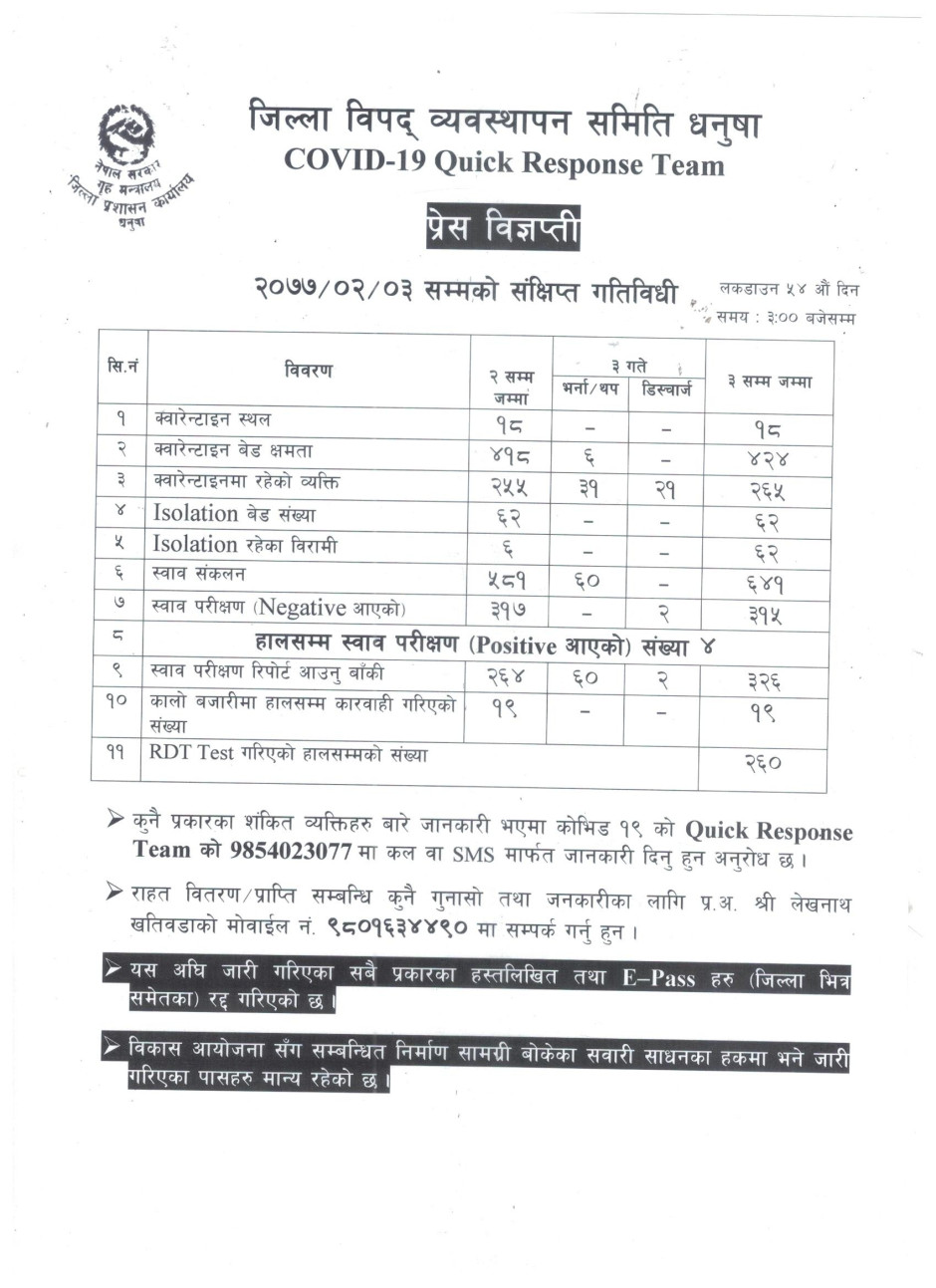 मिति २०८२/१०/२७ गते धनुषा जिल्लाको निर्वाचन क्षेत्र नं. 1, 3 र ४ मा अनुगमन गर्दा निर्वाचन आचारसंहिता विपरित चुनाव प्रचार प्रसार गरिएको पाइएकाले कारवाही गरिएको छ