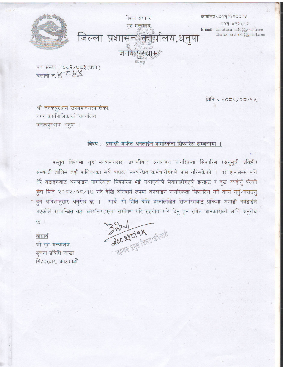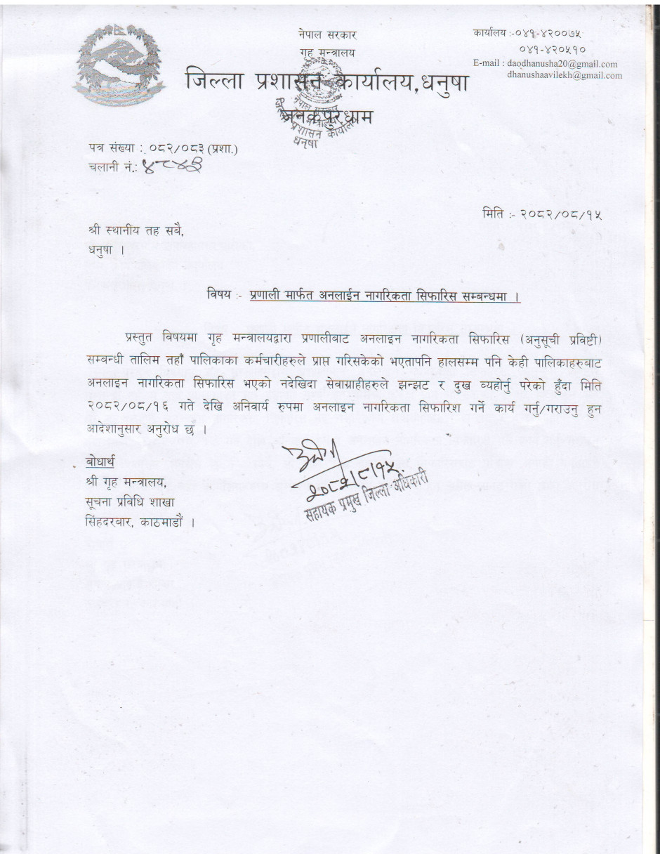 जिल्ला प्रशासन कार्यालय धनुषाबाट जारी गरिएको सूचना ।