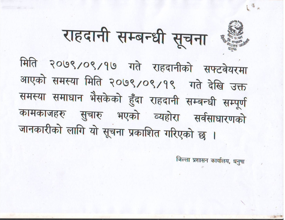 जिल्ला प्रशासन कार्यालय धनुषाबाट जारी गरिएको सूचना ।
