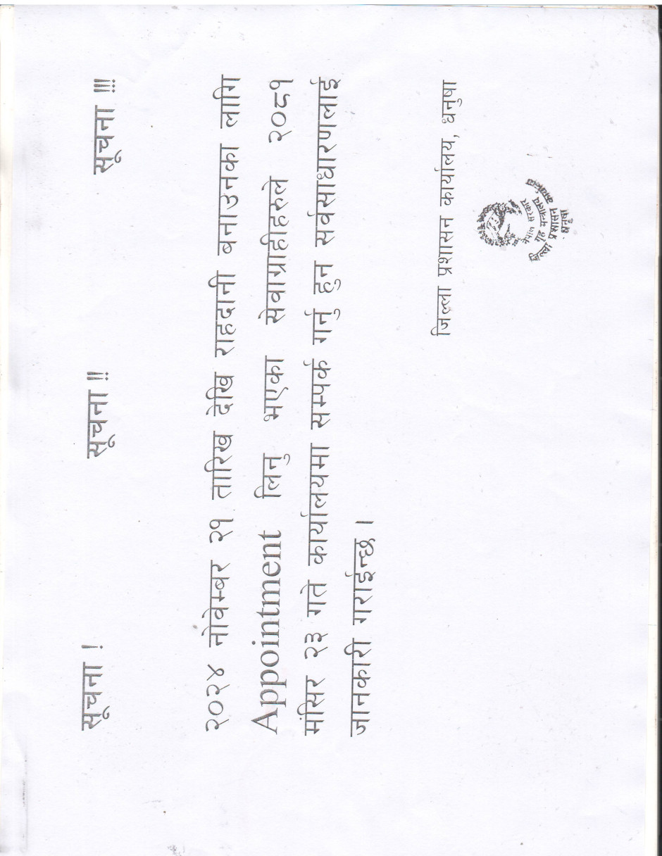 जिल्ला प्रशासन कार्यालय धनुषाबाट जारी गरिएको सूचना ।
