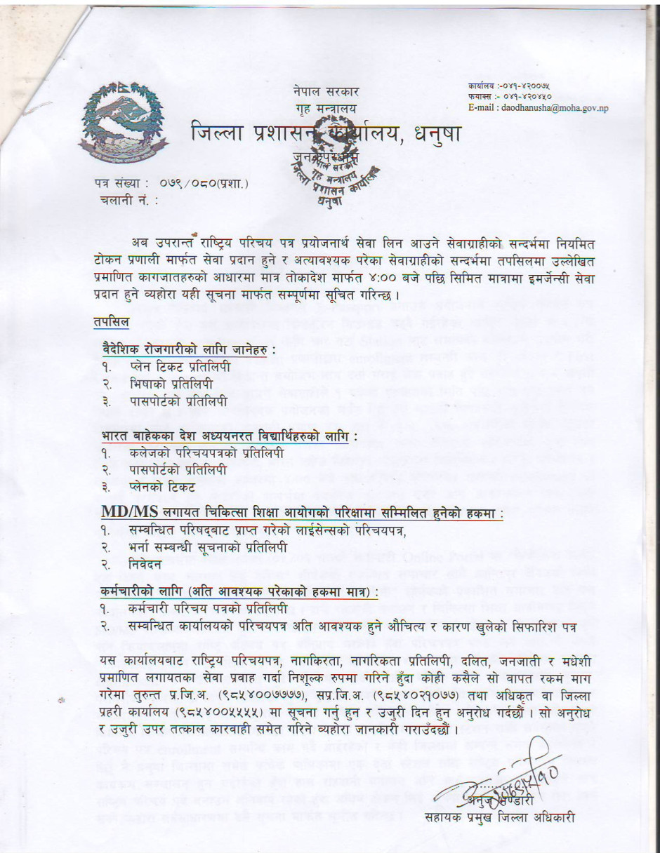 जिल्ला प्रशासन कार्यालय धनुषाबाट जारी गरिएको सूचना ।