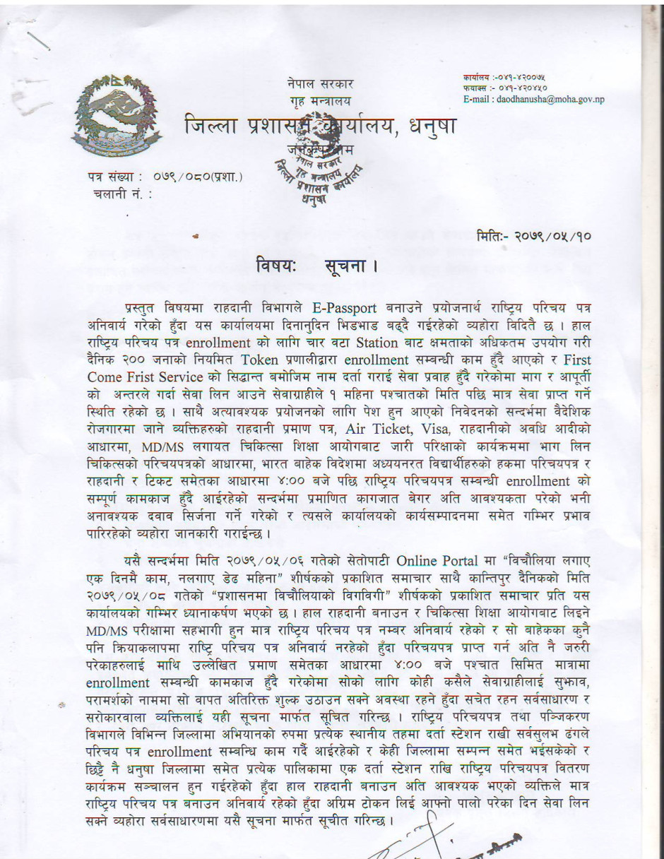 राष्ट्रिय परिचय पत्रको Enrollment सम्बन्धि सूचना।