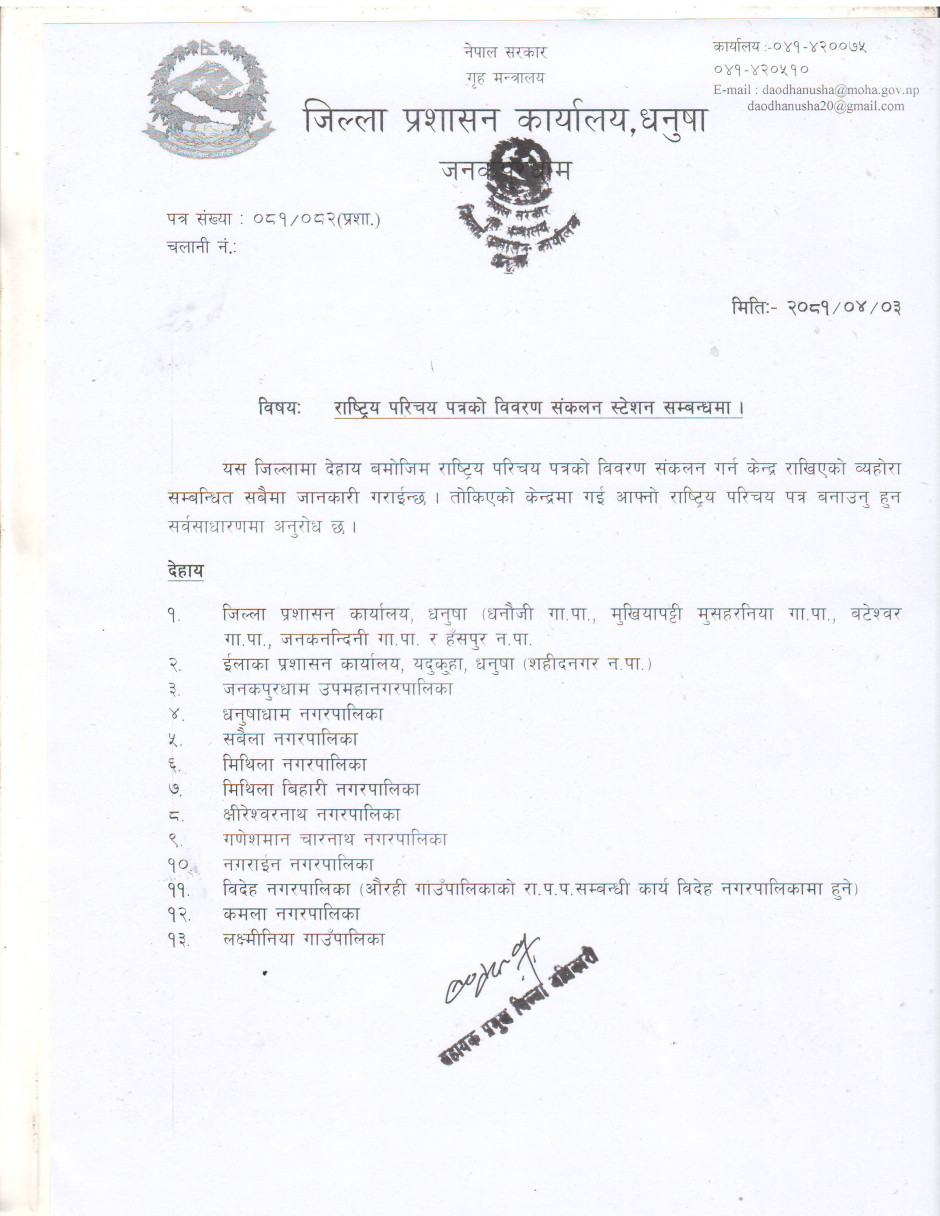 जिल्ला प्रशासन कार्यालय धनुषाबाट जारी गरिएको सूचना ।