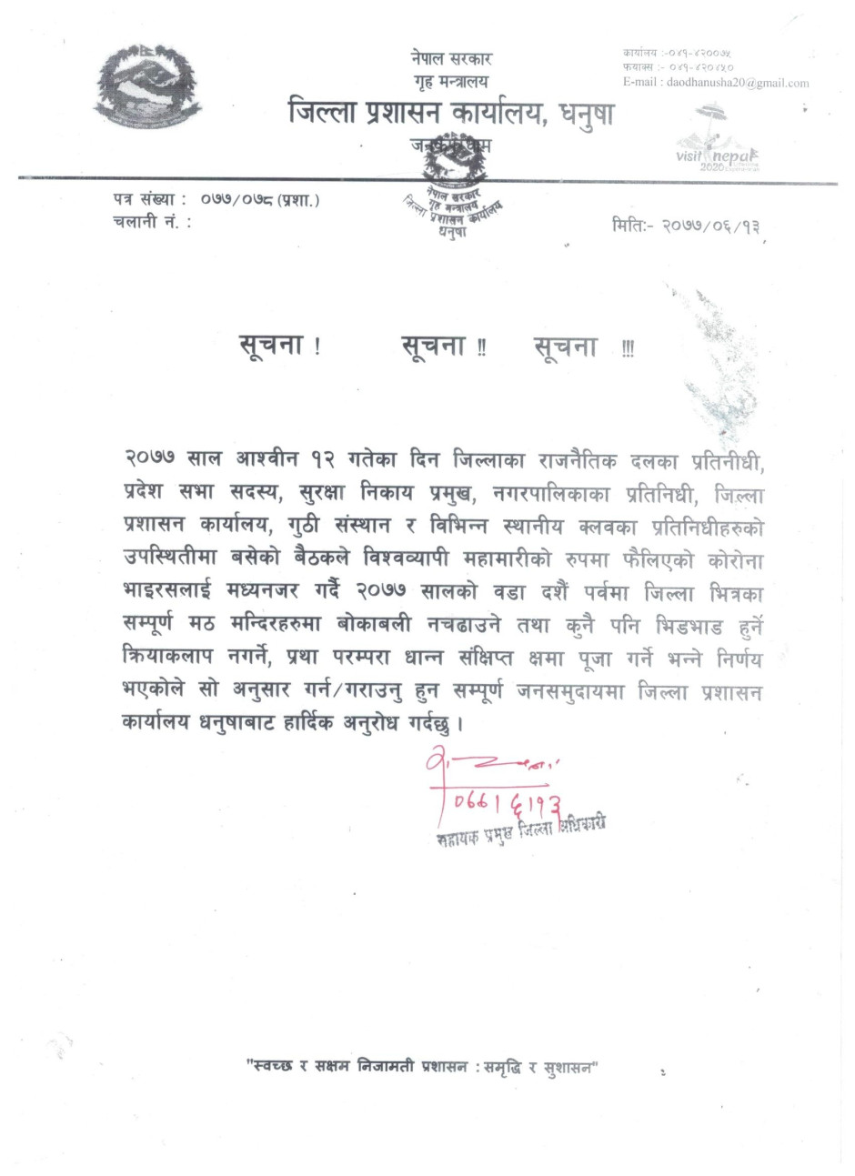 © सर्वाधिकार सुरक्षित जिल्ला प्रशासन कार्यालय, धनुषा