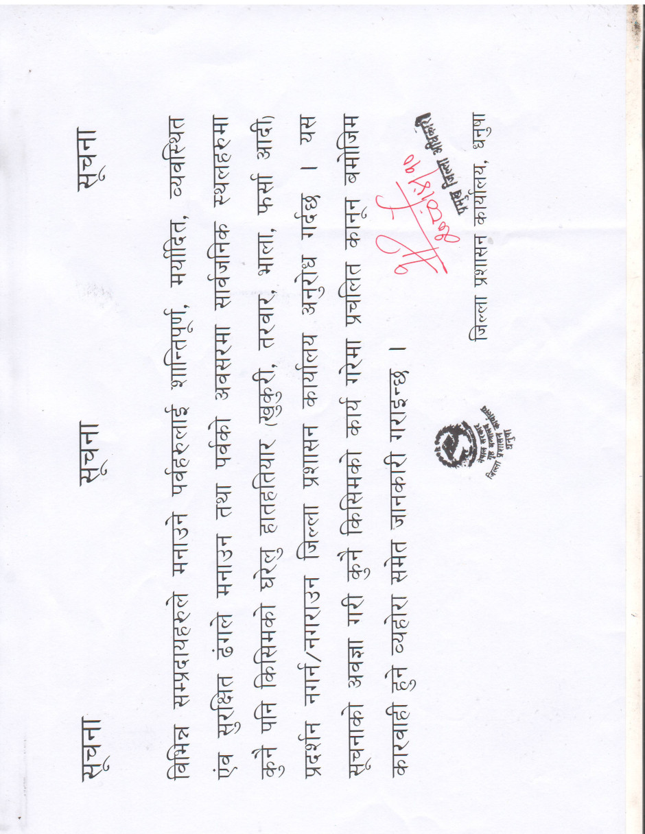 जिल्ला प्रशासन कार्यालय धनुषाबाट जारी गरिएको सूचना ।