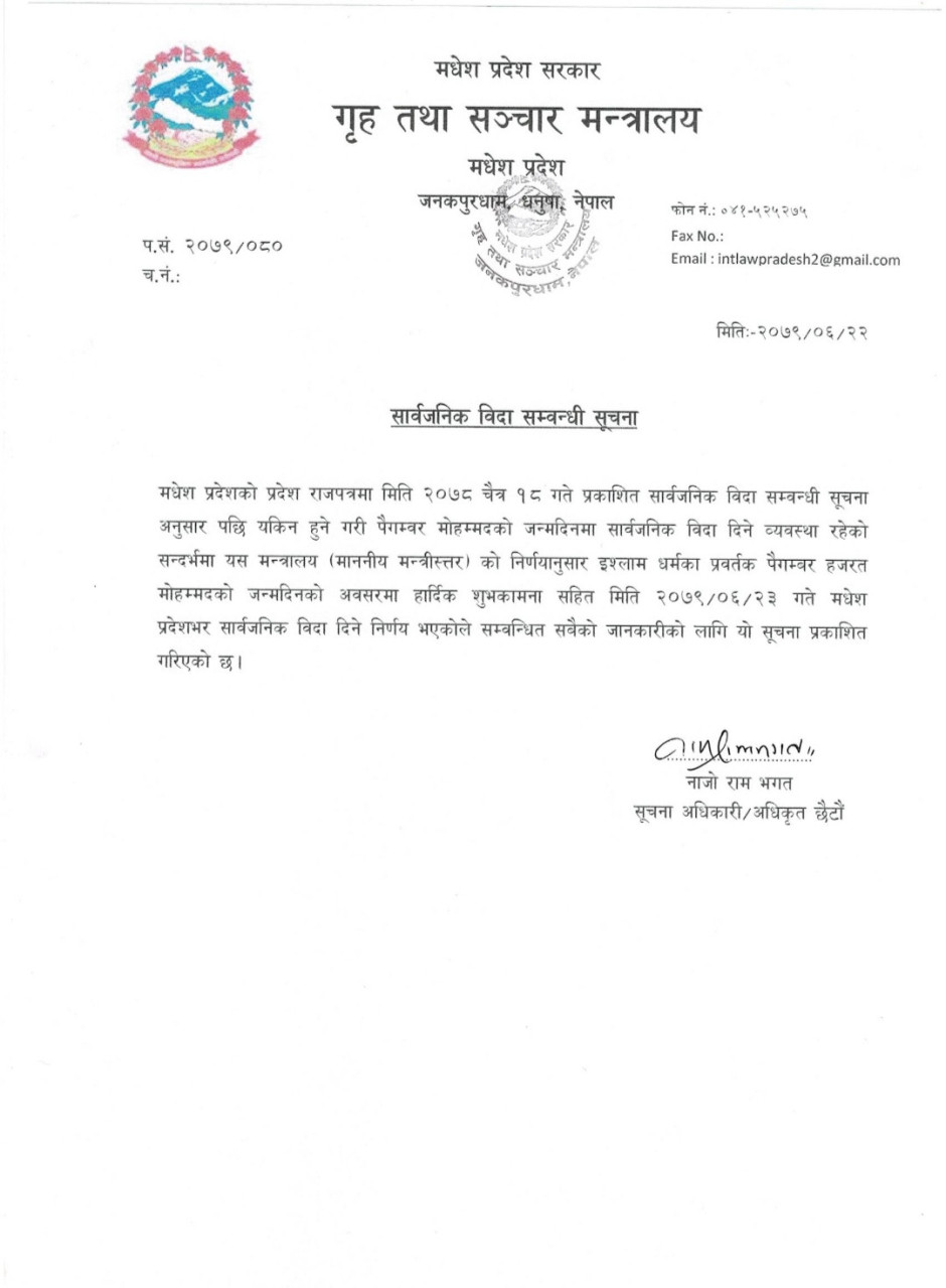 सार्वजनिक विदा सम्बन्धि सुचना