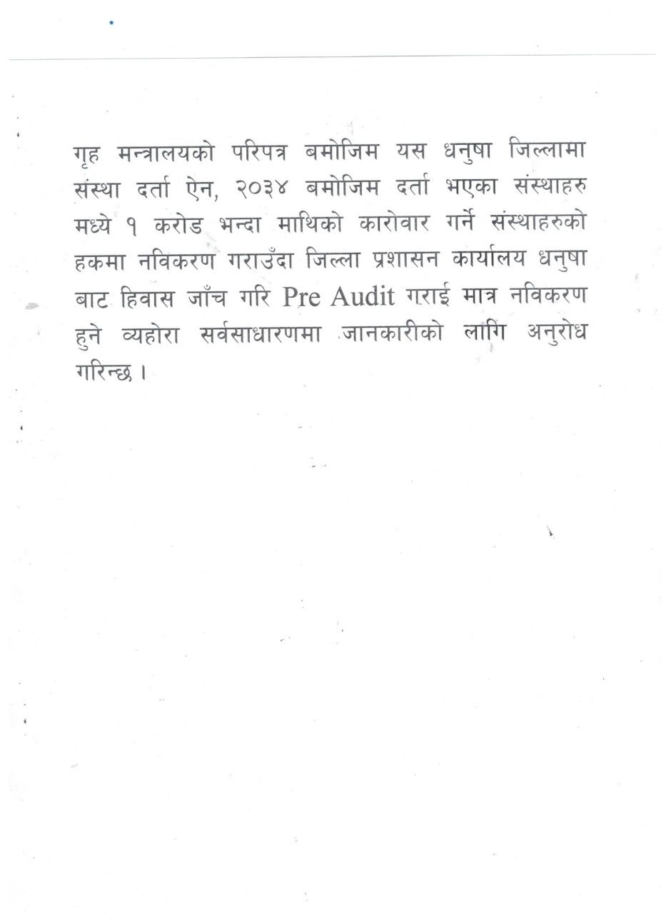 जिल्ला प्रशासन कार्यालय धनुषाबाट जारी गरिएको सूचना ।