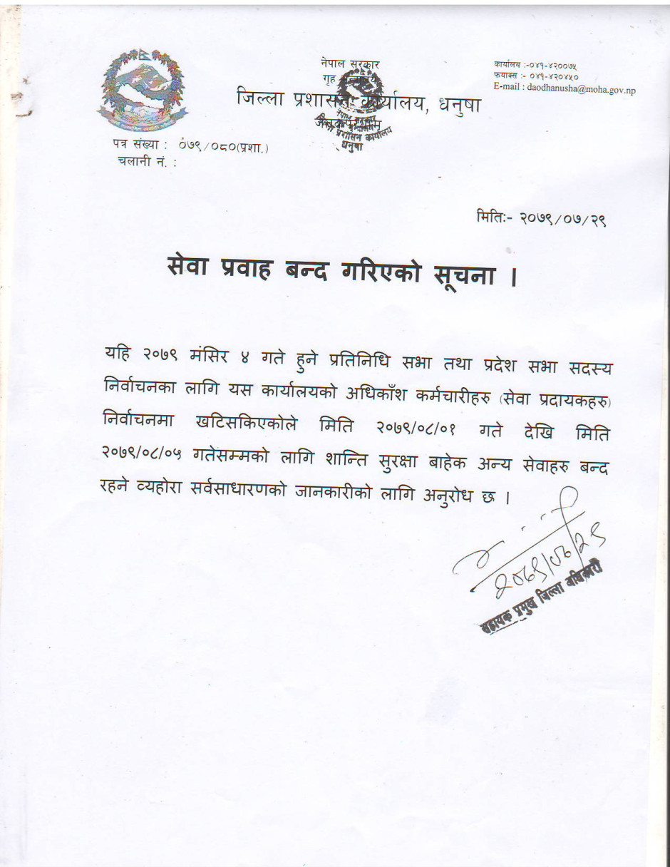 जिल्ला प्रशासन कार्यालय धनुषाबाट जारी गरिएको सूचना ।