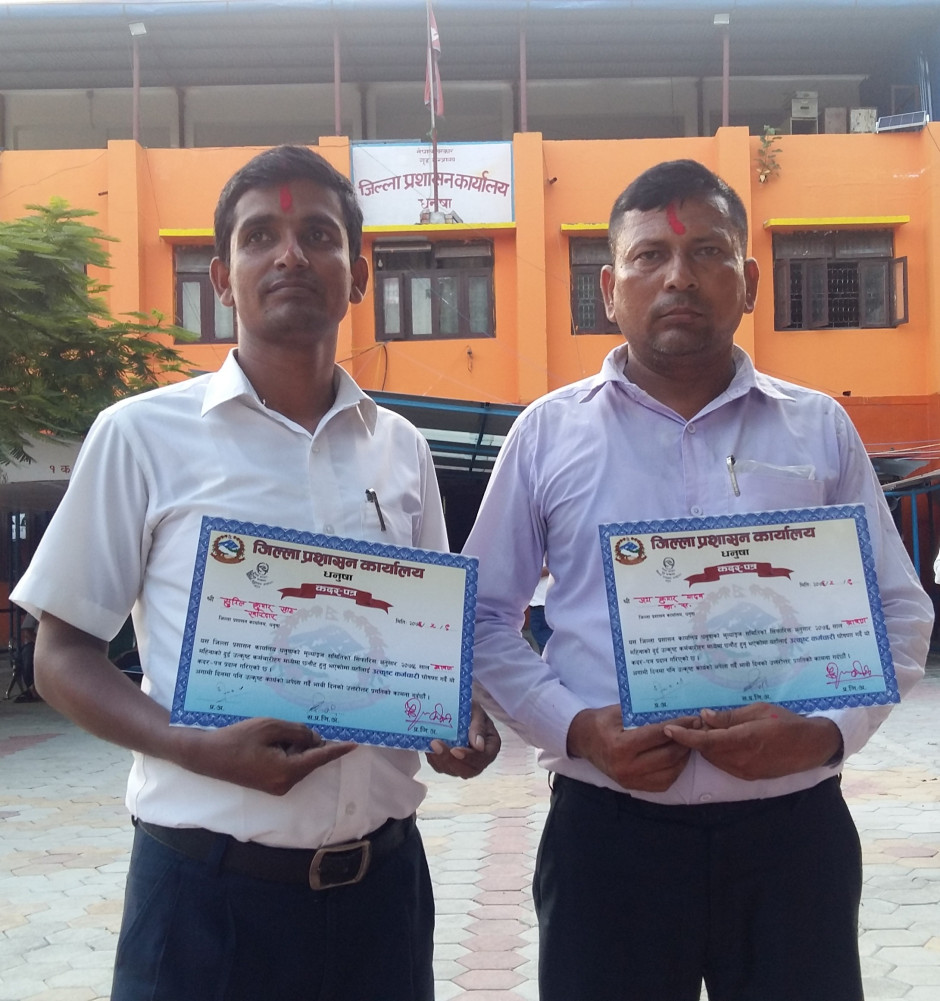 सो अनुरुप महिना उत्कृष्ठ कर्मचारी देहाय अनुरुप रहनु भएको छ । निजामती तर्फ १। खरिदार श्री सुनिल कुमार साह २। कार्यालय सहयोगी श्री जय कुमार यादव
