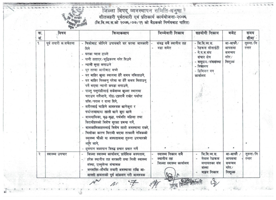 शीत लहर पूर्व–पूर्वतयारी तथा प्रतिकार्य योजना, २०७६ धनुषा