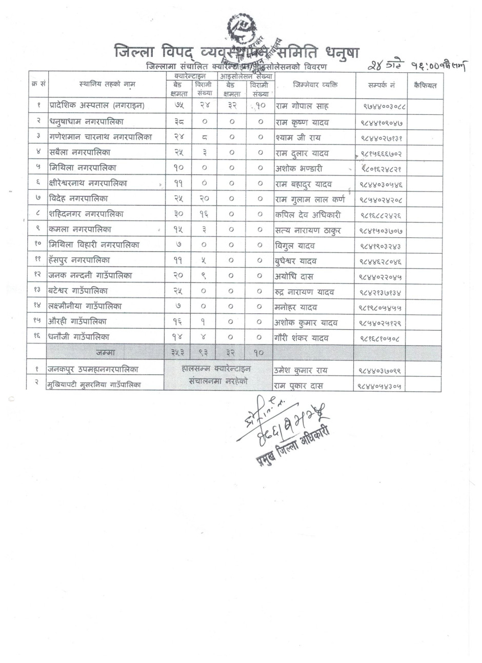 धनुषा जिल्लामा संचालित क्वारेन्टाइन/आइसोलेसनको विवरण