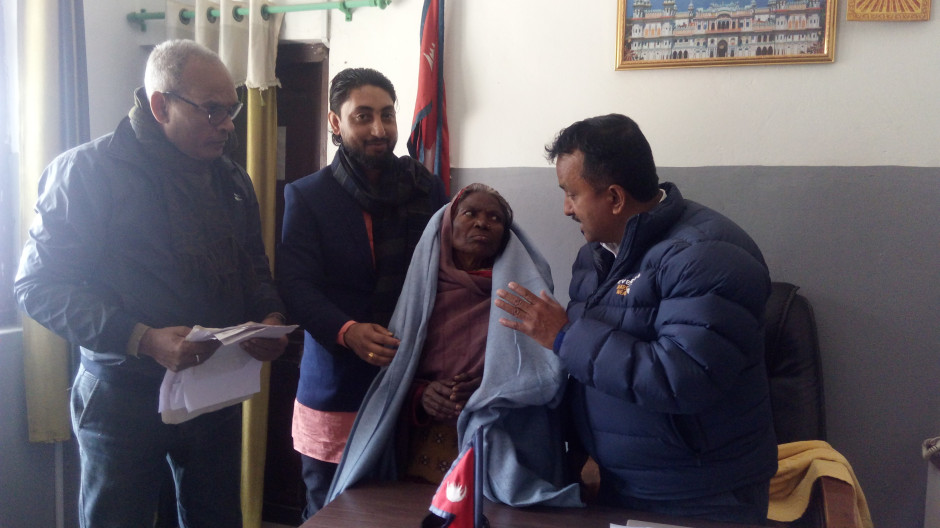 मिति २०७५/१०/१४ गतेका दिन जिल्ला प्रशासन कार्यालयमा नागरिकता बनाउन आएका सेवाग्राही जिल्ला धनुषा, सखुवा महेन्द्रनगर वडा नं. ४ बस्ने रुपनी देवीलाई नागरिकता प्रमाण पत्रको साथै कम्वल समेत वितरण गरियो ।