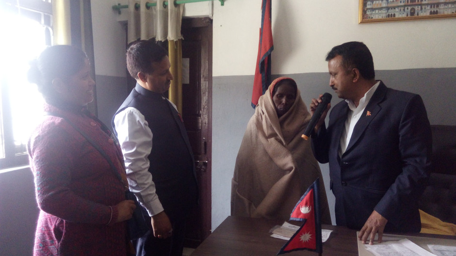 मिति २०७५/११/०२ गतेका दिन जिल्ला प्रशासन कार्यालयमा नागरिकता बनाउनको लागि आएका सेवाग्राही बेचनी मुसहरलाई कम्वल वितरण गरियो ।